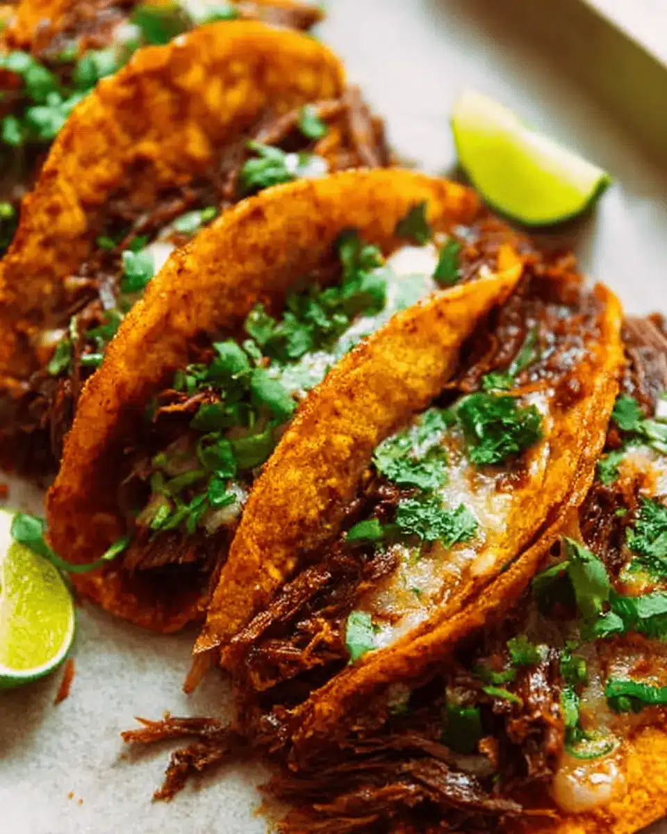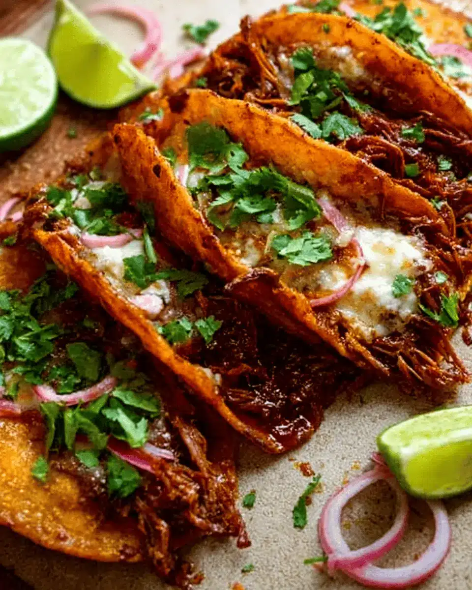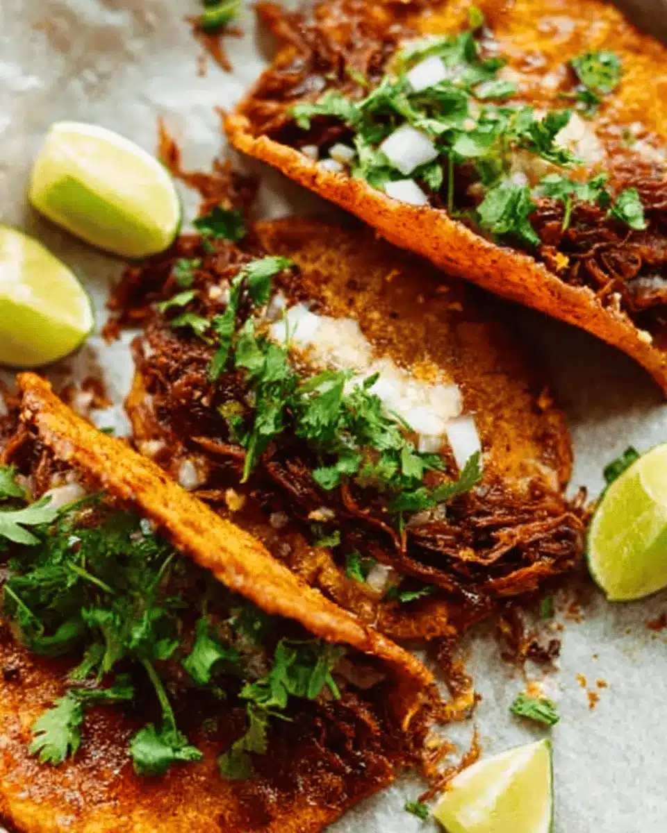 Elevate your Birria Tacos feast by adding delightful sides. Serve them alongside fragrant Mexican rice for heartiness or a crisp, fresh corn salad to keep things light. Pickled red onions offer a tangy crunch, while some guacamole provides a creamy texture that pairs beautifully with the tacos. Don’t forget to present a vibrant salsa bar — from smoky chipotle to zesty pico de gallo, it invites everyone to customize their plate!
