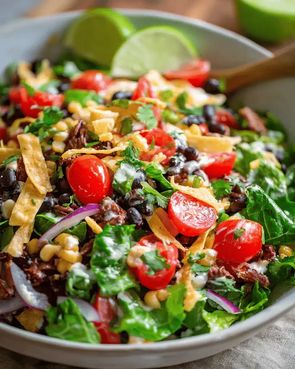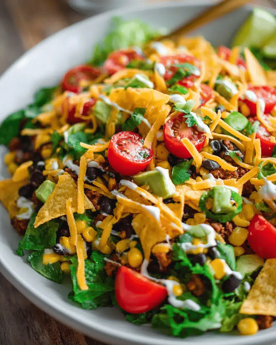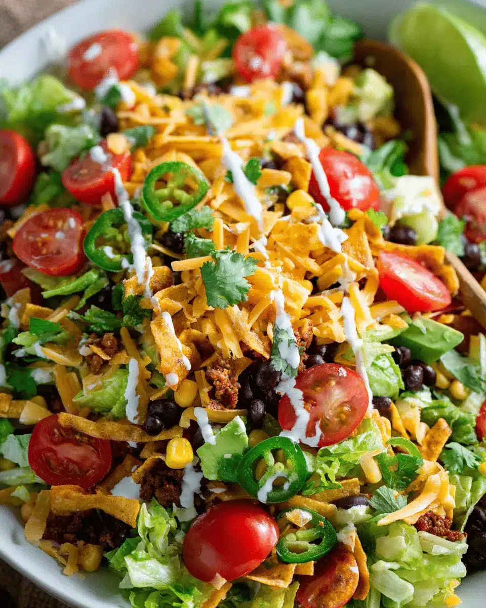 Before serving, add a few tablespoons of your creamy salsa dressing to the salad. Toss everything to ensure each bite is coated in flavor. Serve immediately with extra dressing and toppings on the side, allowing everyone to customize their own plate.