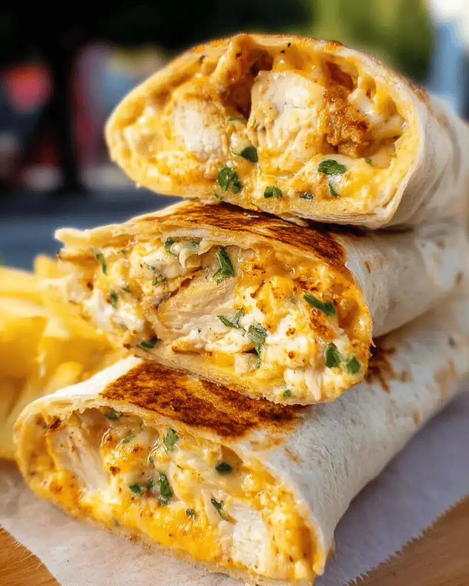 If you’re feeling adventurous, try cheesy buffalo chicken wraps for a spicy twist! Simply use shredded buffalo chicken instead of the classic garlic chicken. You can mix the chicken with hot sauce for that perfect kick. Top it off with extra cheese for that melty goodness and add some crisp lettuce for crunch. This variation is not just a meal; it’s a flavor explosion that will leave your taste buds dancing.