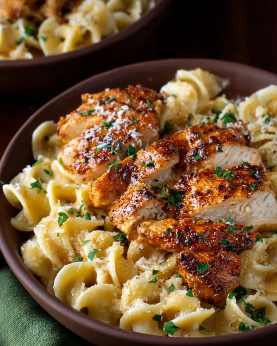 To serve, place a generous helping of those buttery noodles on a plate and top with the juicy chicken. Don't forget to sprinkle some freshly chopped parsley and maybe a bit more Parmesan cheese on top for a lovely finish. Your Chicken and Buttered Noodles are now ready to enjoy!