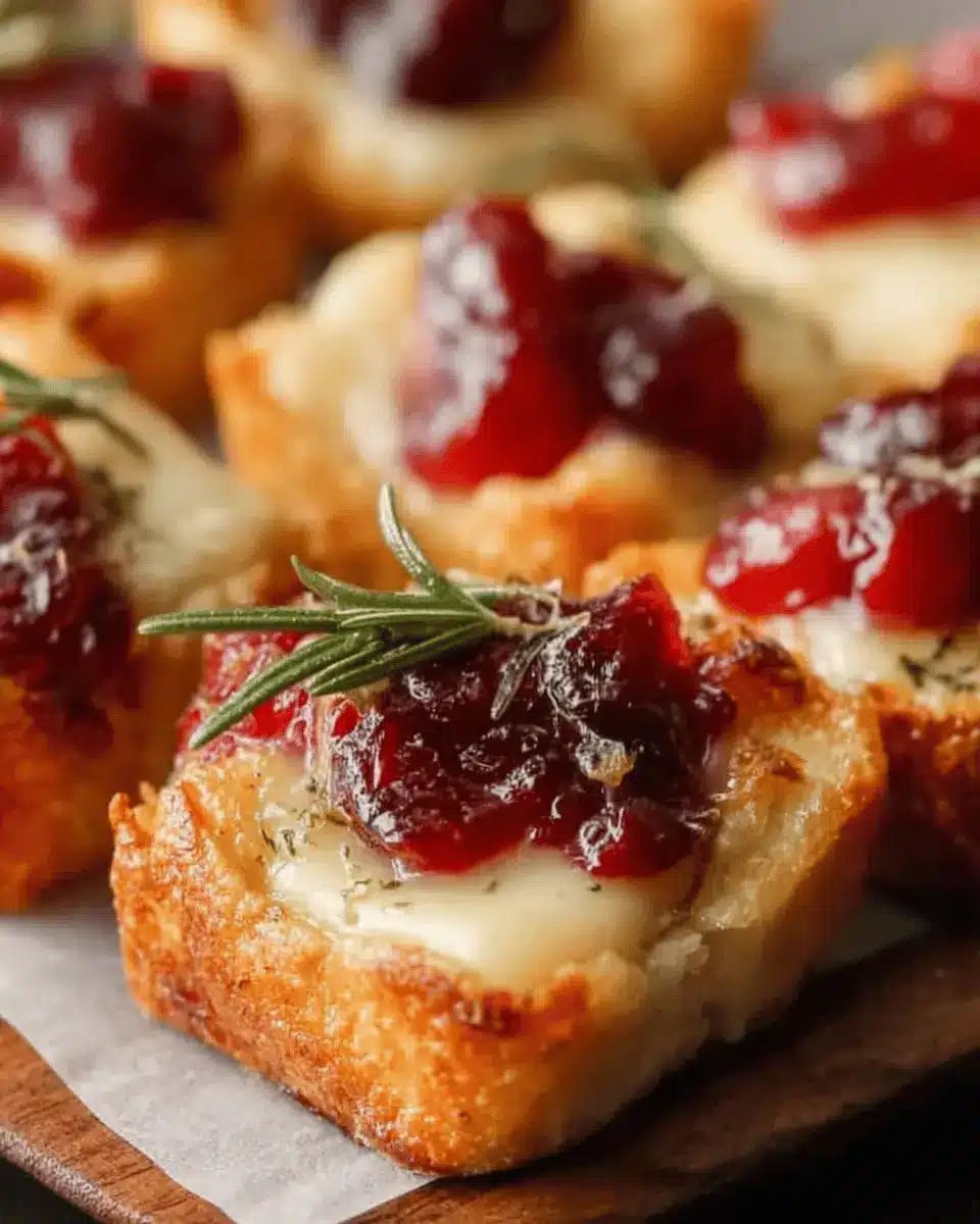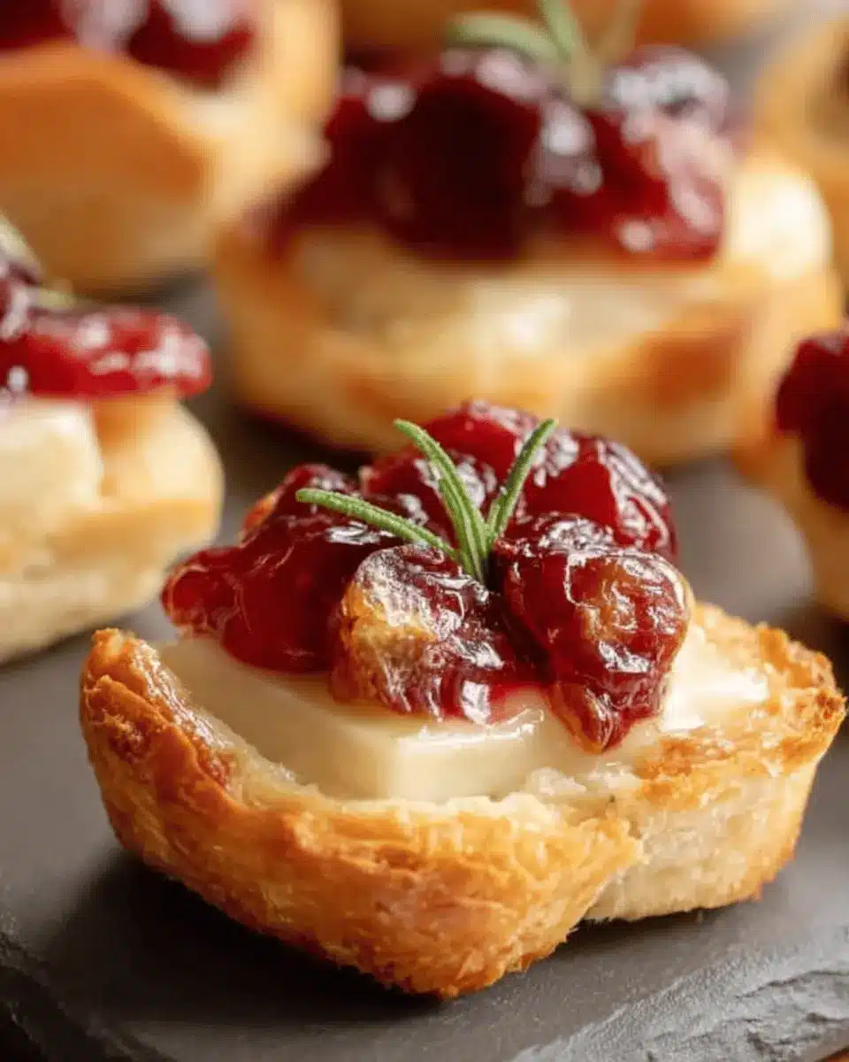 In summary, Cranberry Brie Bites are not only simple to make but also a delightful addition to any gathering. Their combination of creamy brie, sweet cranberry sauce, and fragrant rosemary will have your guests coming back for seconds. Be sure to enjoy these warm right out of the oven!