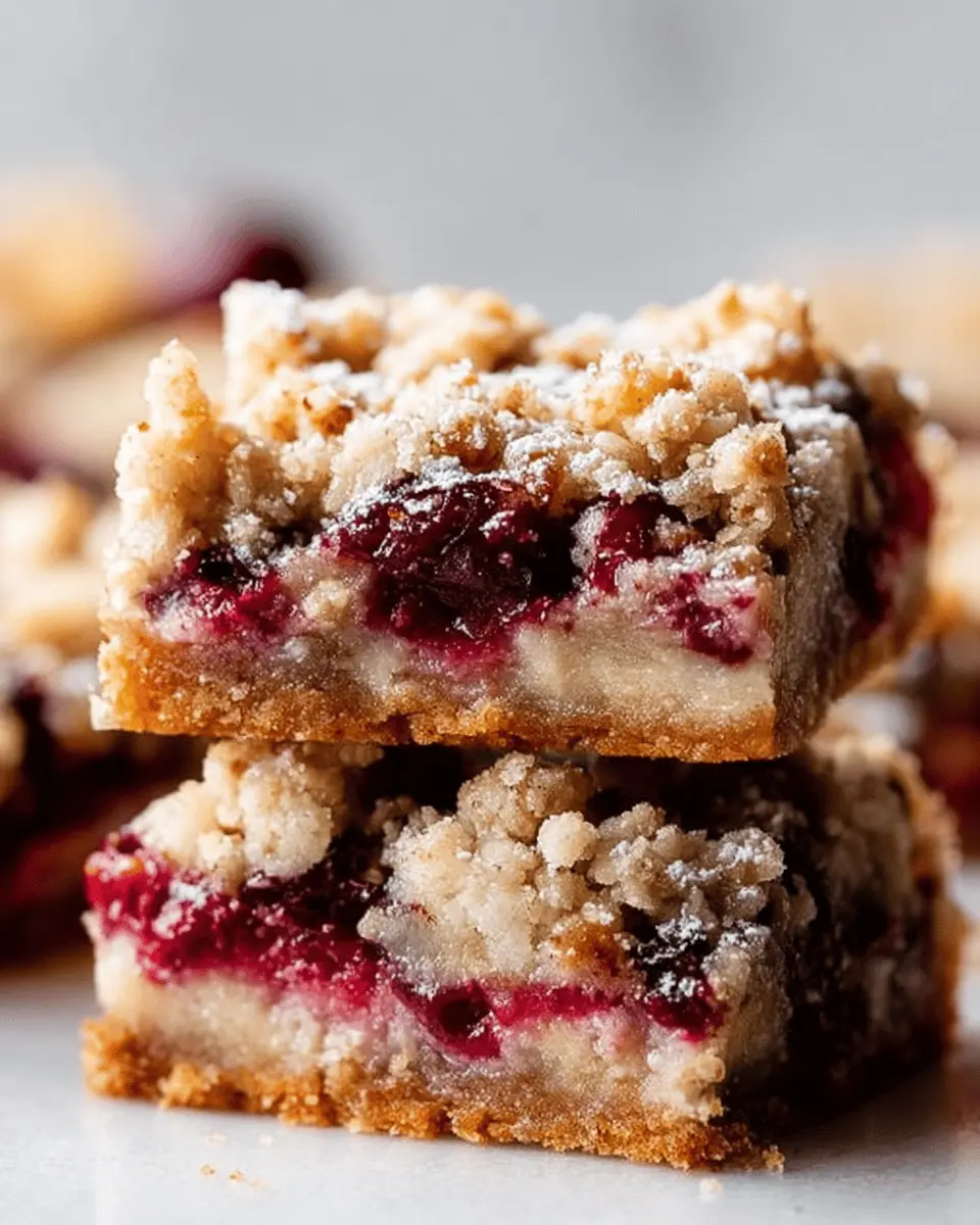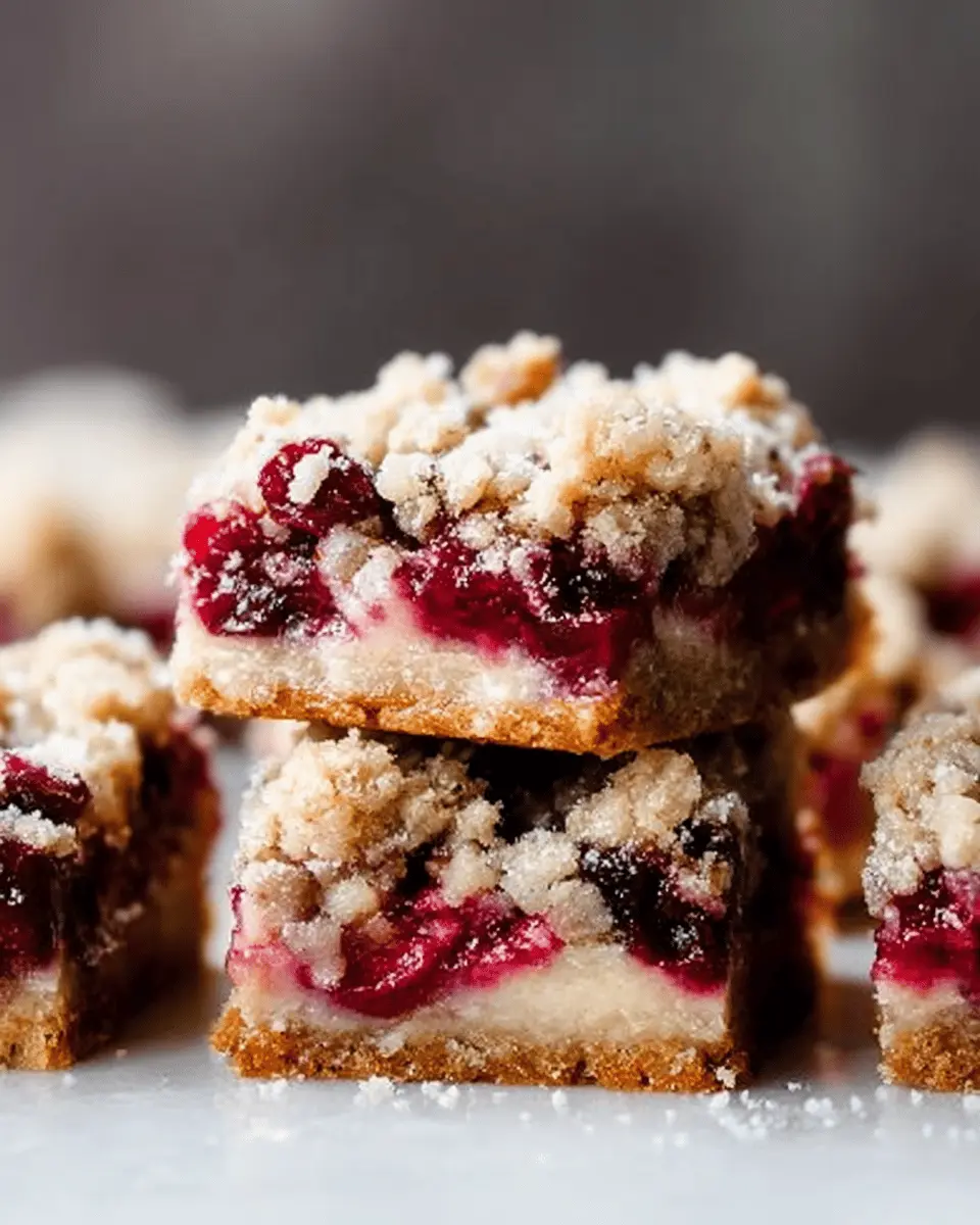 In summary, cranberry crumble pie bars are the perfect sweet treat for any occasion. Their delightful combination of tart cranberries and crumbly topping will leave your taste buds dancing. Serve them at gatherings or enjoy them as a cozy snack at home. These bars are sure to impress family and friends alike!