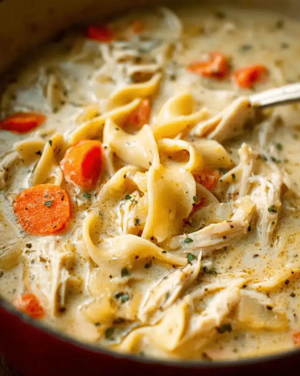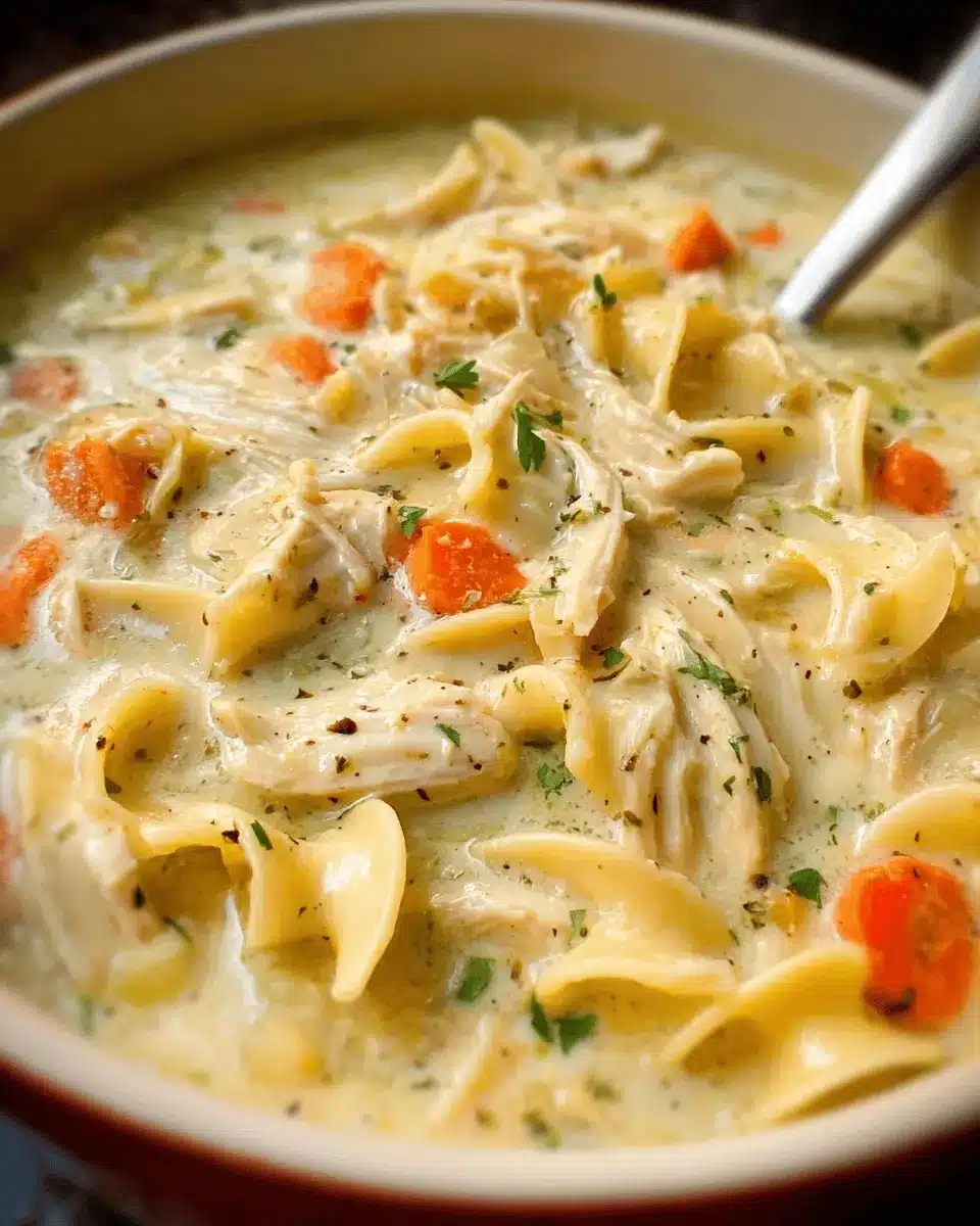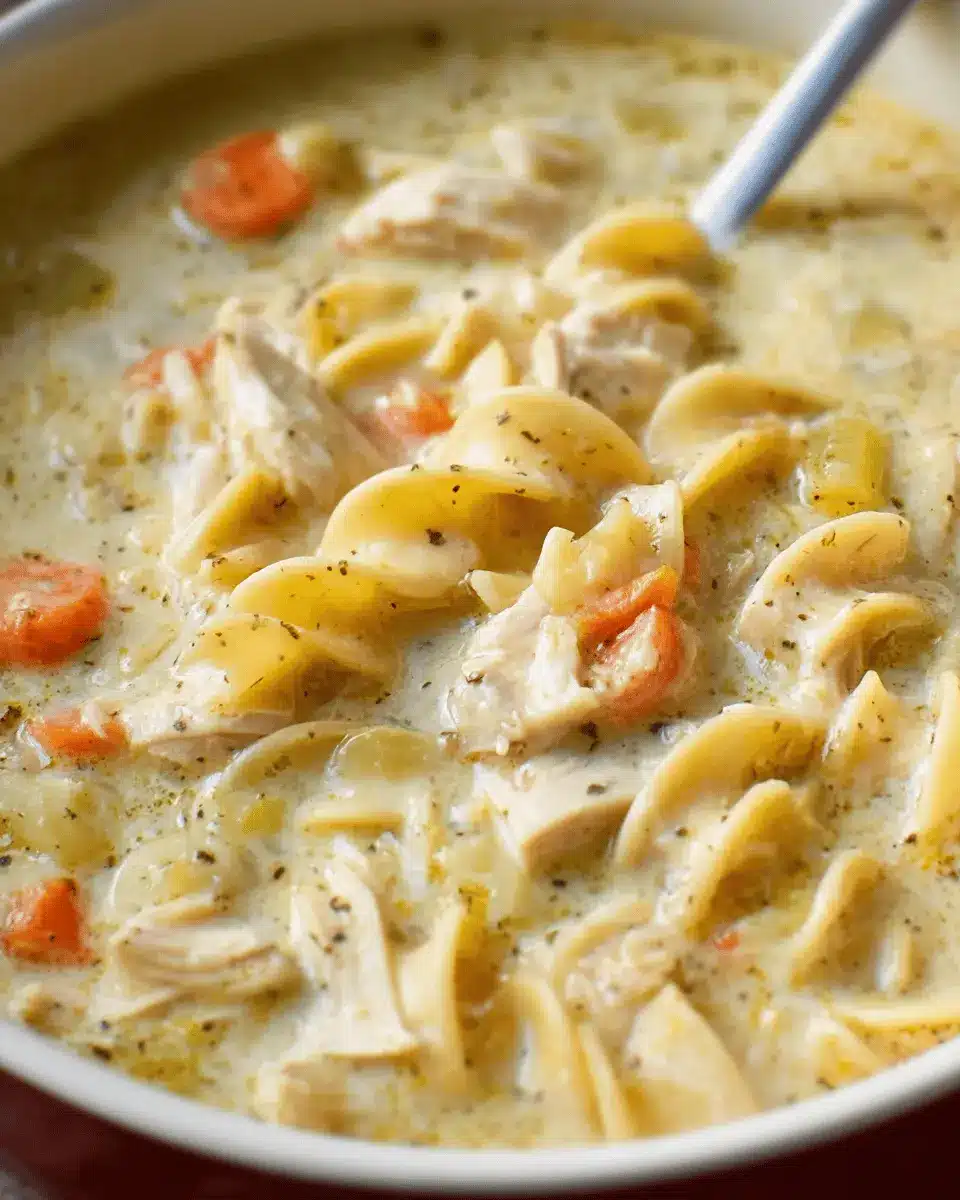And there you have it—a deliciously creamy chicken noodle soup ready to warm your soul! Enjoy!