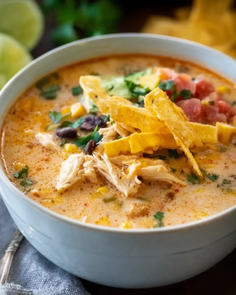 With just a little patience and love, you’ve crafted a creamy chicken tortilla soup that’s bound to please! Enjoy garnishing it with your favorite toppings like avocado, tortilla strips, or fresh cilantro for that extra flair. Perfect for chilly nights or casual gatherings, this soup is sure to be a hit with friends and family alike!