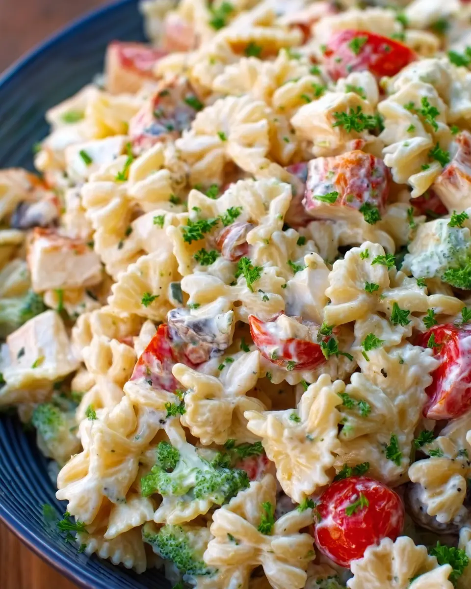 Imagine coming home after a long day, opening your refrigerator, and finding a big bowl of creamy pasta salad waiting just for you. It’s not only quick to whip up, but you can also tailor the ingredients to what you love—think chicken ham or turkey bacon for a protein boost, or even add different seasonal vegetables throughout the year.