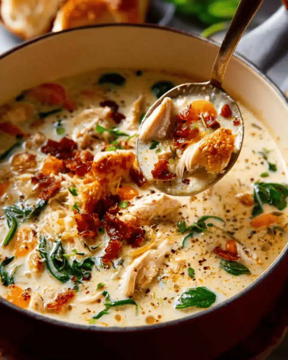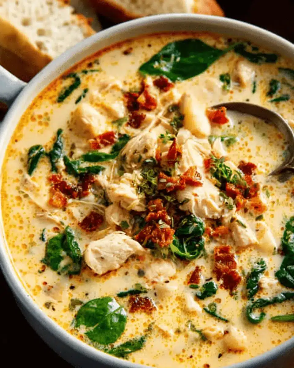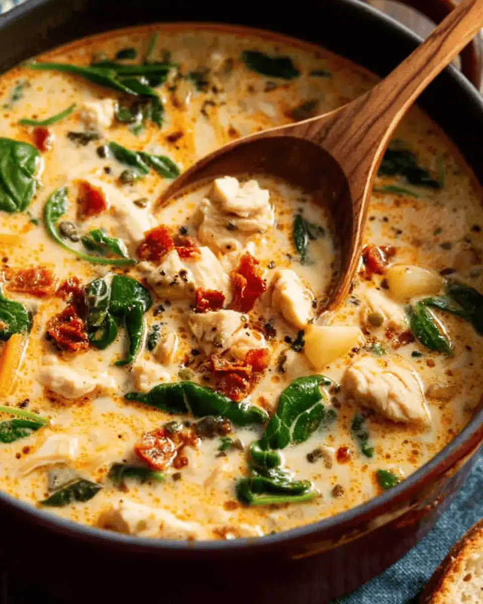 Imagine savoring the rich, creamy broth filled with juicy chicken, tender pasta, lush spinach, and a touch of sun-dried tomatoes—each bite transports you to a cozy rustic kitchen in Tuscany. This soup embodies warmth and love, and preparing it allows you to infuse your personal touch.