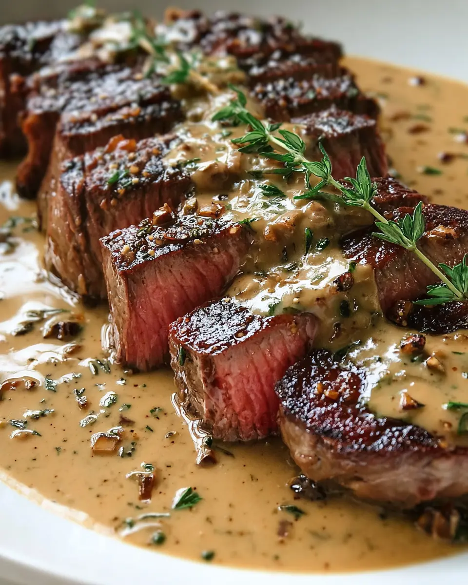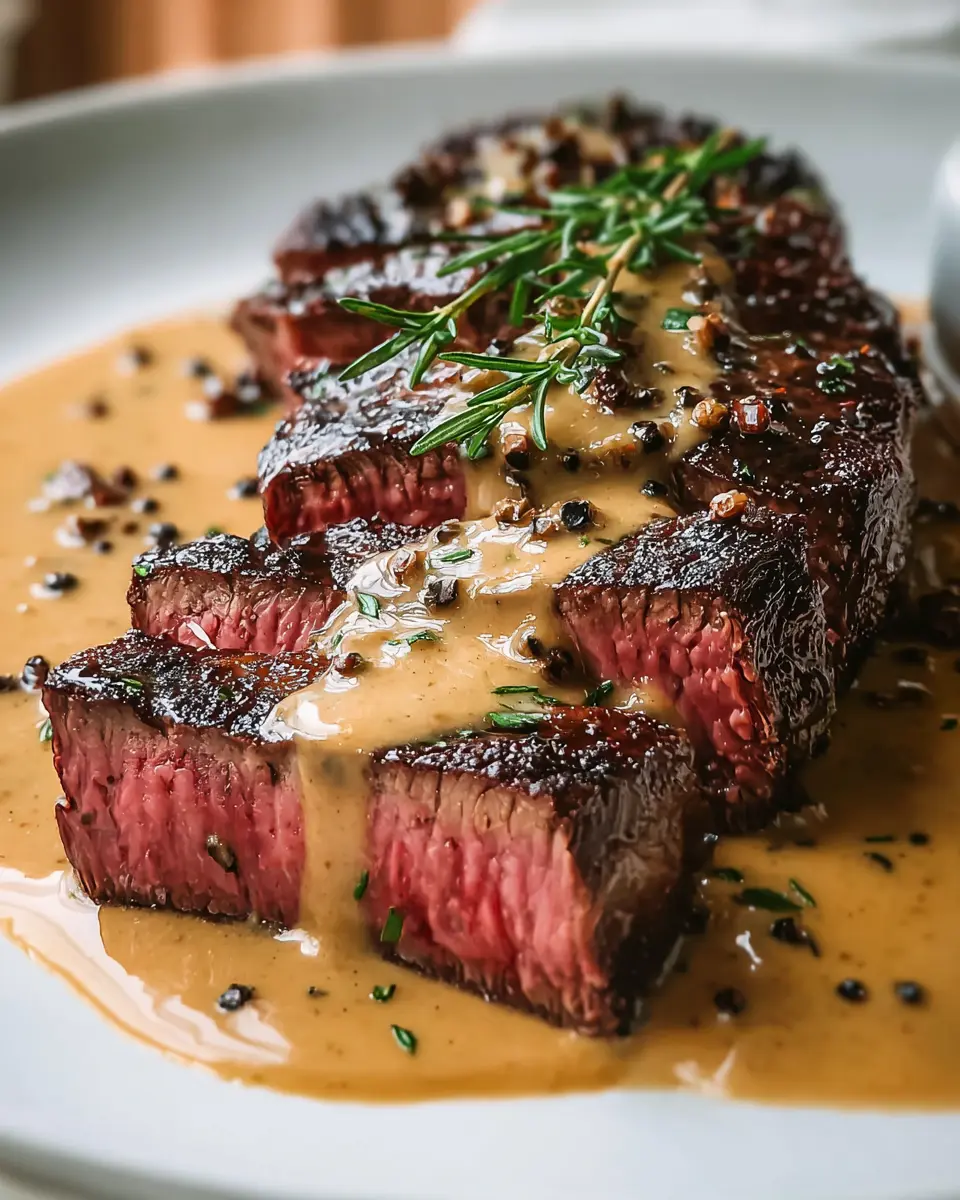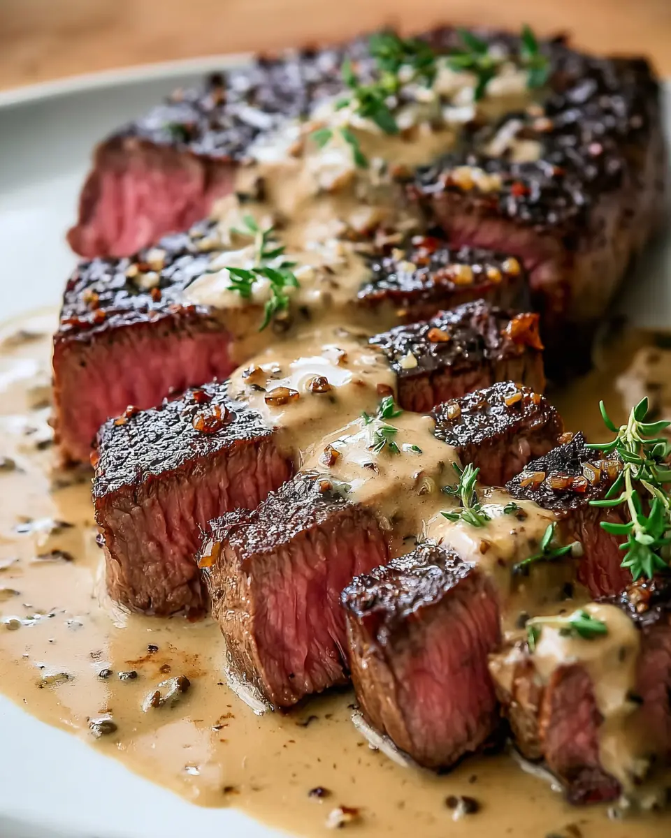 French Seared Steak with Cognac Cream Sauce