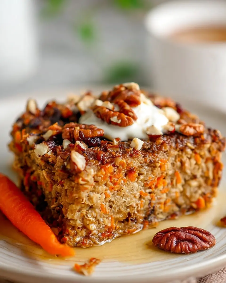 After baking, allow it to cool for about 5 minutes before serving. This dish can be enjoyed warm and even stored in the refrigerator for a quick breakfast or snack throughout the week. Dive into this Healthy Carrot Cake Baked Oatmeal, and enjoy a slice of happiness that’s both wholesome and delectable!