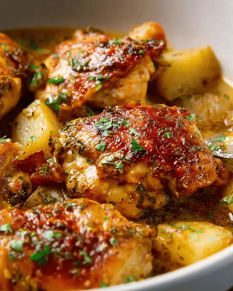 Cooking can often feel like a chore, but with Garlic Butter Chicken, it transforms into a delightful experience! This dish has become a staple in my kitchen, and it’s easy to see why. The combination of succulent chicken thighs, golden crispy potatoes, and a rich garlic butter sauce creates a symphony of flavors that keeps you coming back for more.