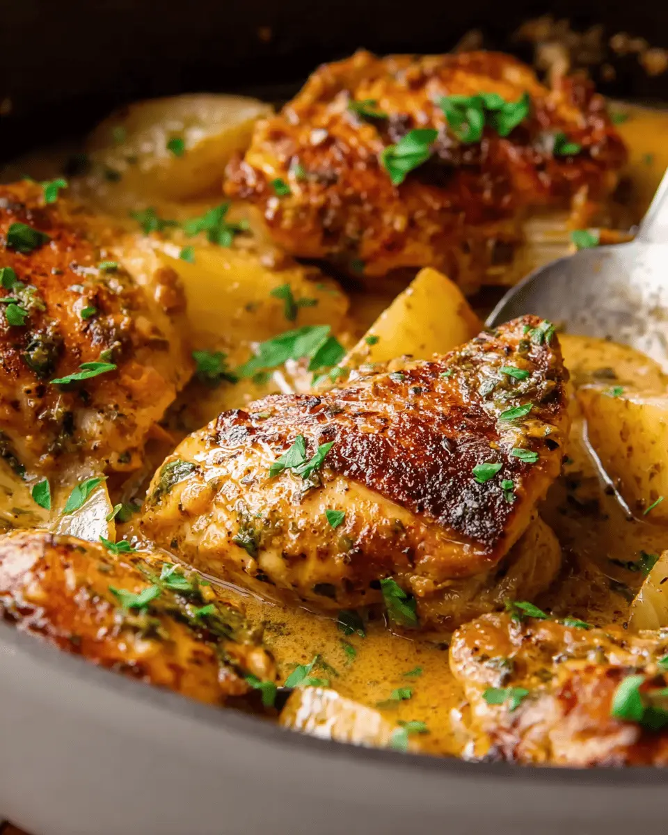 One of the reasons I make this garlic butter chicken at least once a week is its incredible ease and flavor. The combination of tender chicken thighs and crispy potatoes, all drenched in a delicious garlic butter sauce, makes for a satisfying meal that’s perfect for any evening. Let’s dive into the simple steps of preparing this delightful dish!