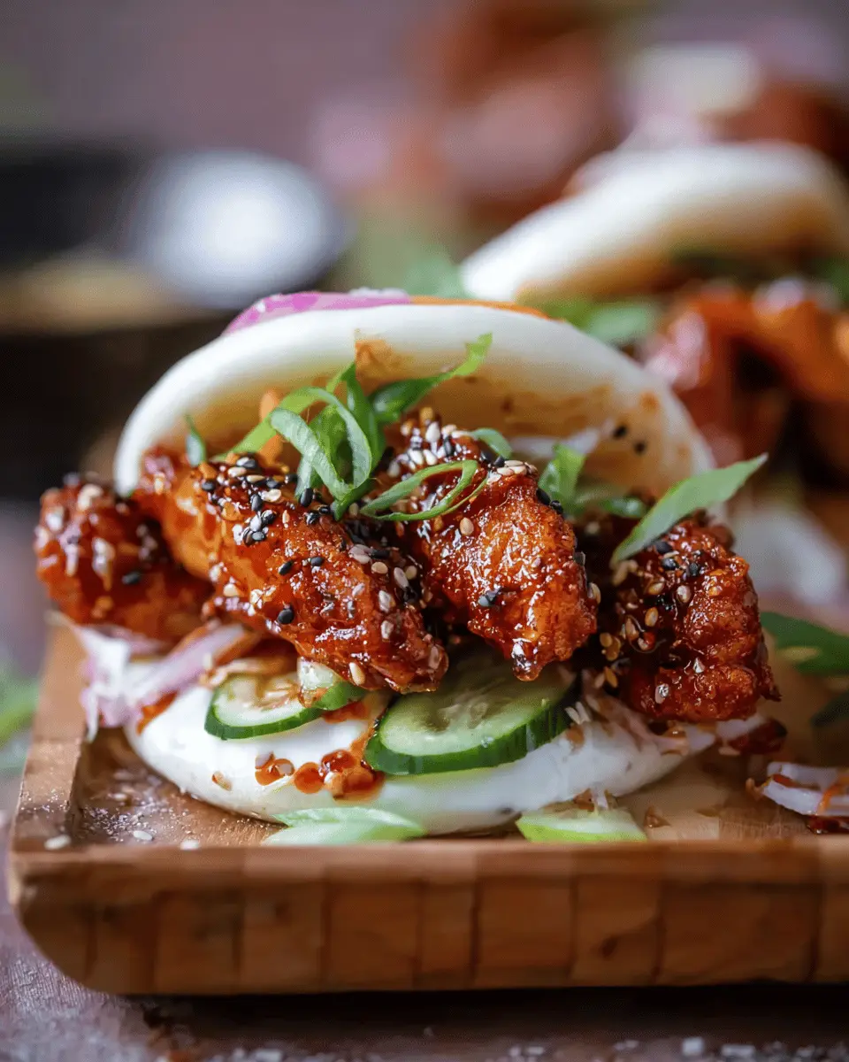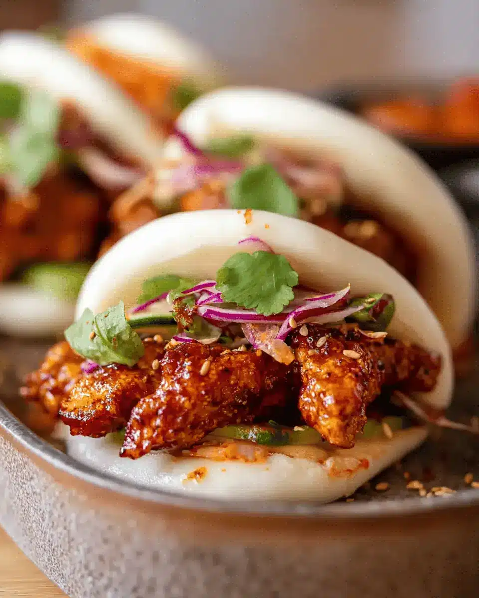 Customization is the beauty of Korean Chicken Bao. Besides the crunchy cucumbers and zesty red onions, think about adding shredded carrots, pickled radish, or even a sprinkle of kimchi for an extra tang. Fresh herbs like mint or basil can also elevate your dish, offering a refreshing contrast to the sticky glaze. Remember, these bao are your culinary canvas—let your creativity shine!