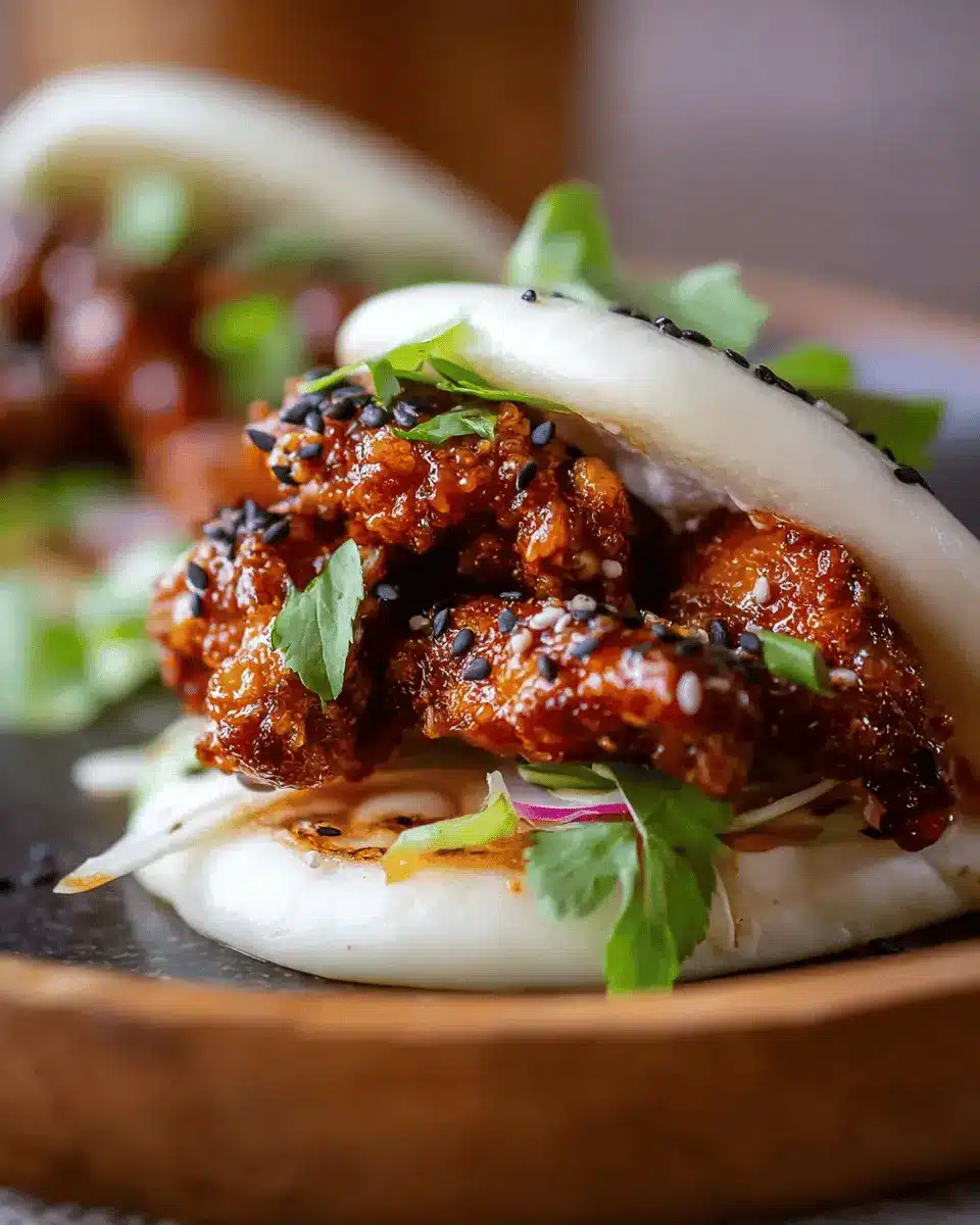 Absolutely! You can prepare the crispy chicken and the creamy sesame sauce a day ahead. Just coat the chicken in the glaze right before serving. The bao can also be steamed in advance—simply store them in an airtight container and reheat in a steam basket for a few minutes.