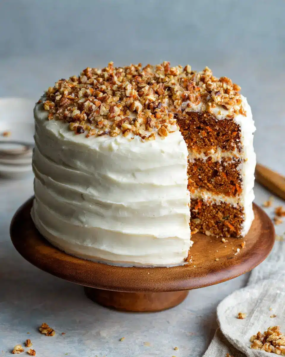 - Layered Delight: Stack the layers high for an impressive display, alternating with cream cheese frosting and chopped walnuts.