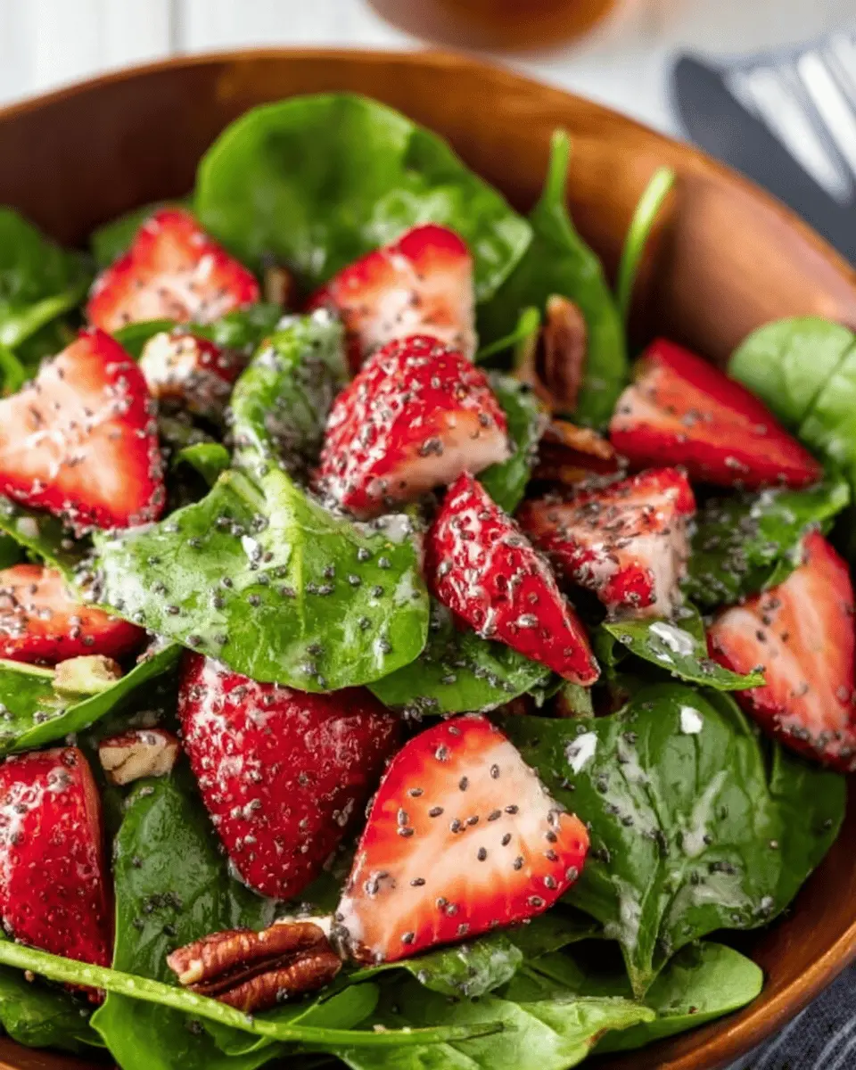 In conclusion, the Spinach Strawberry Salad with balsamic poppy seed dressing is a delightful mix of flavors and textures. Its vibrant colors and nutritious ingredients make it perfect for any occasion, from casual lunches to elegant dinners. Try it out, and elevate your salad game today!
