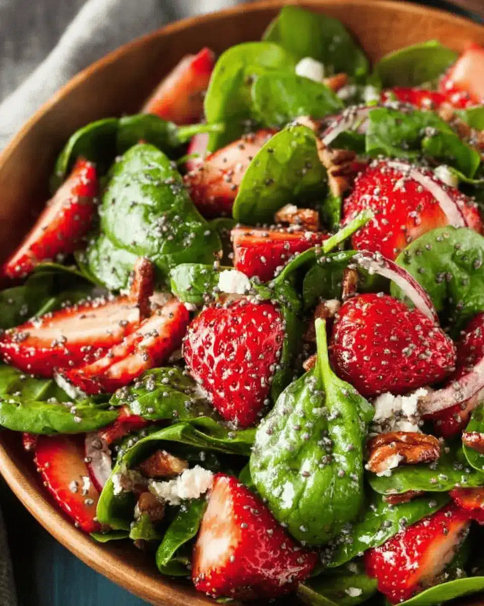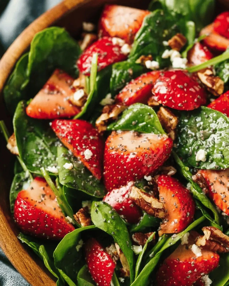 Incorporating spinach into your diet is a fantastic way to enjoy numerous health benefits, such as improved bone health and increased energy due to its rich iron content. Strawberries, on the other hand, are loaded with antioxidants, vitamins, and fiber—making this salad not just a dish, but a nutrient powerhouse!