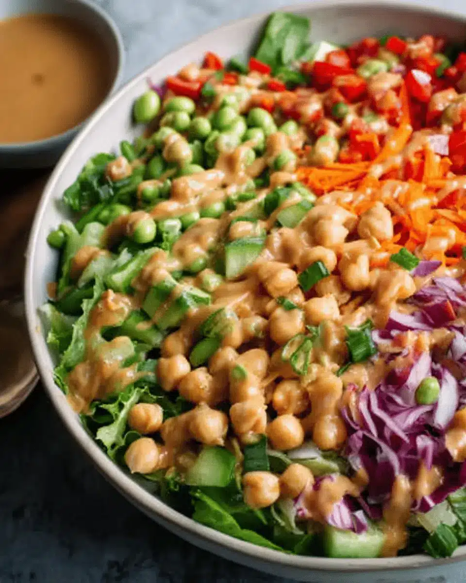 Plus, the peanut dressing is simple to prepare and adds a creamy richness that beautifully complements the crisp vegetables. You can even make a bigger batch of dressing to have on hand, enhancing your other salads throughout the week. Overall, this nutritious, vegan-friendly recipe creates a satisfying meal that’s easy to enjoy any time!