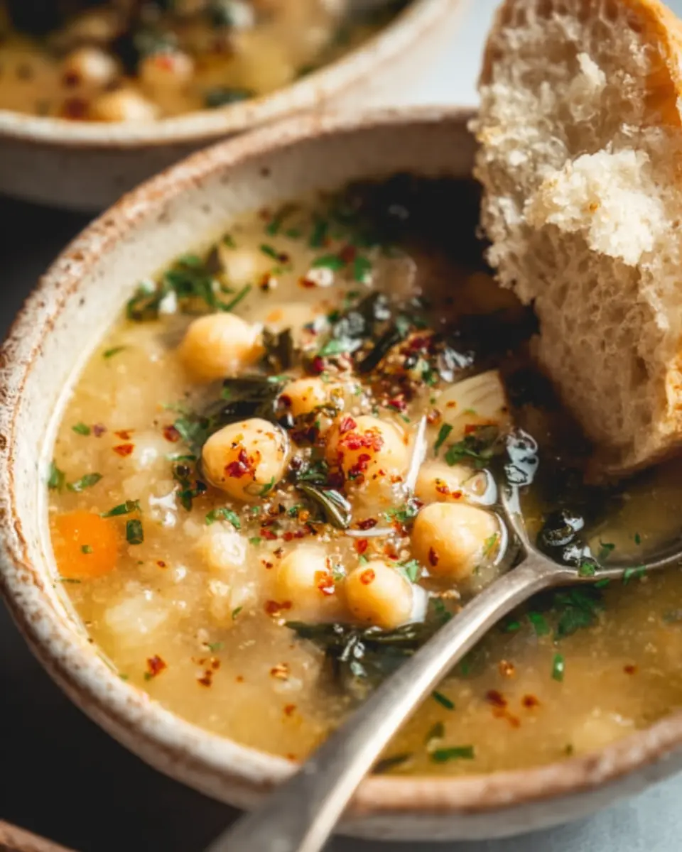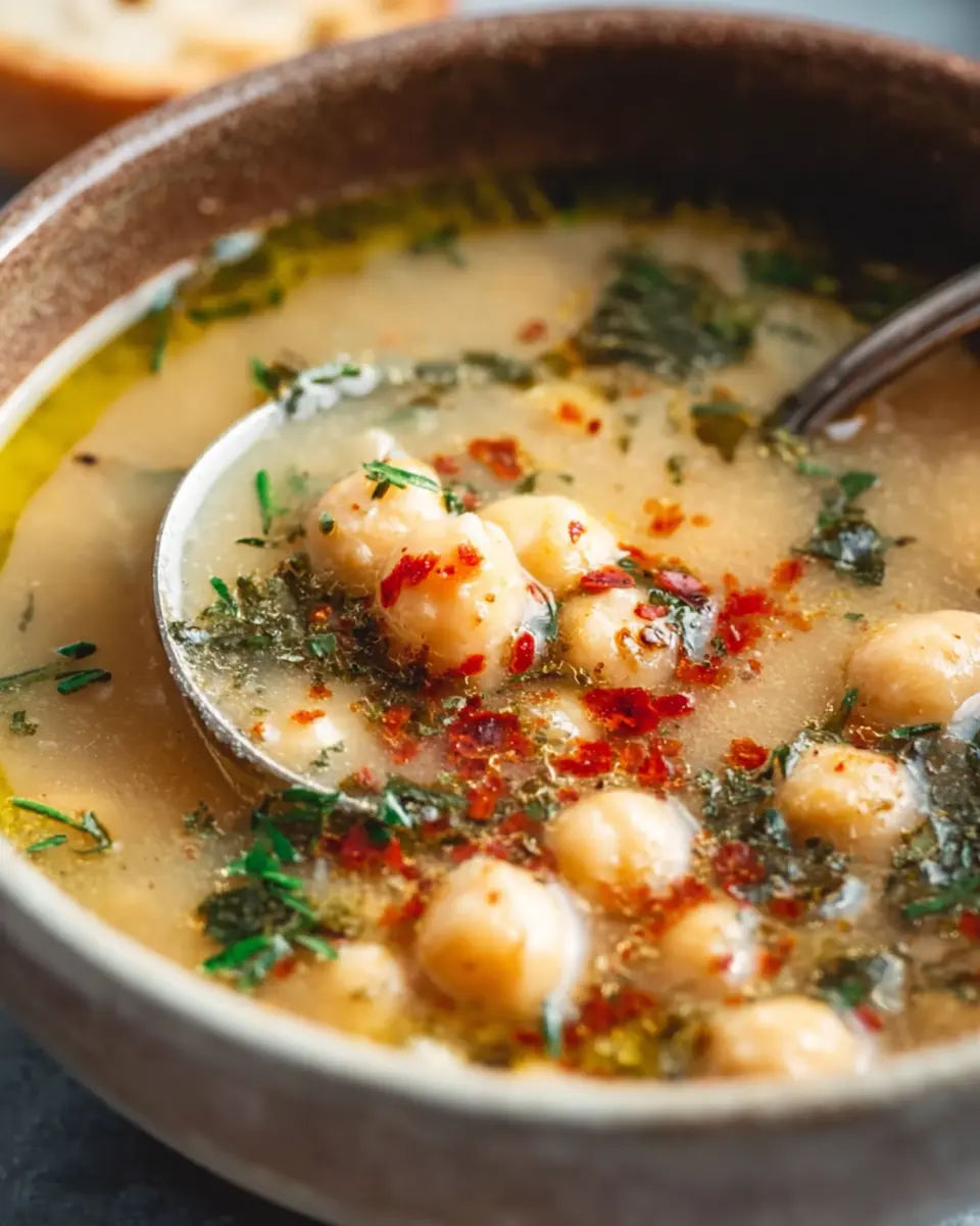 Embrace the comforting warmth of this vegan garlic chickpea soup—you won't regret it!