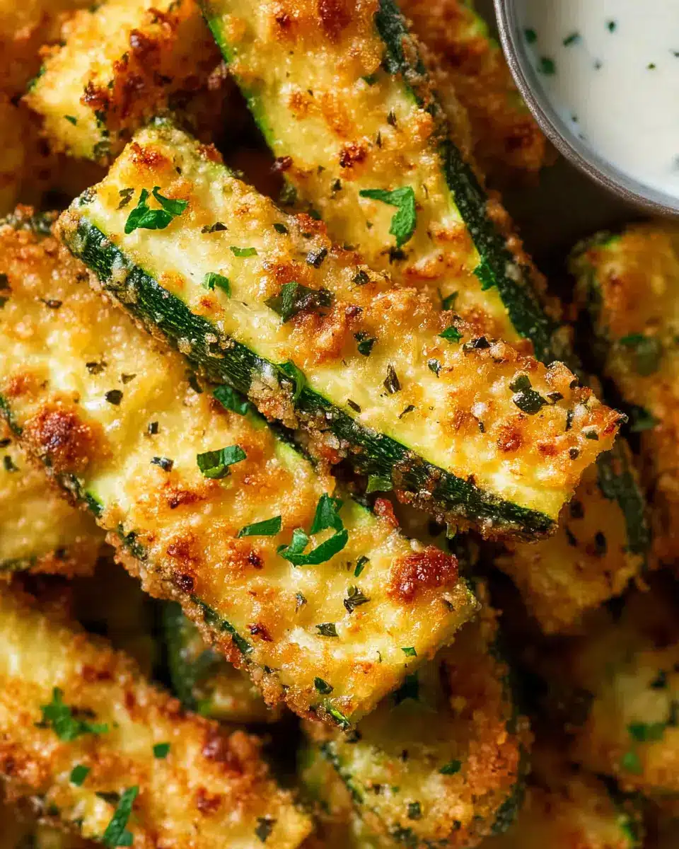 Moreover, they’re incredibly versatile. Pair them with a tangy dipping sauce, such as our basil yogurt dip, or even add your favorite spices for an extra kick. Whether served as an appetizer, side dish, or even a movie night snack, zucchini fries are bound to impress. So, why not give them a try? Your taste buds (and waistline) will thank you! Check out our full recipe below for an easy step-by-step guide to making these delicious bites.